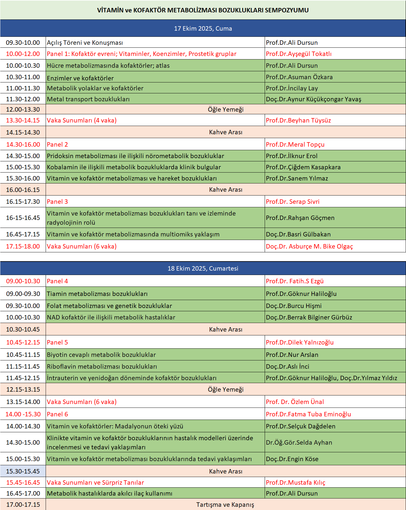 Vitamin ve Kofaktör Metabolizması Bozuklukları Sempozyumu
